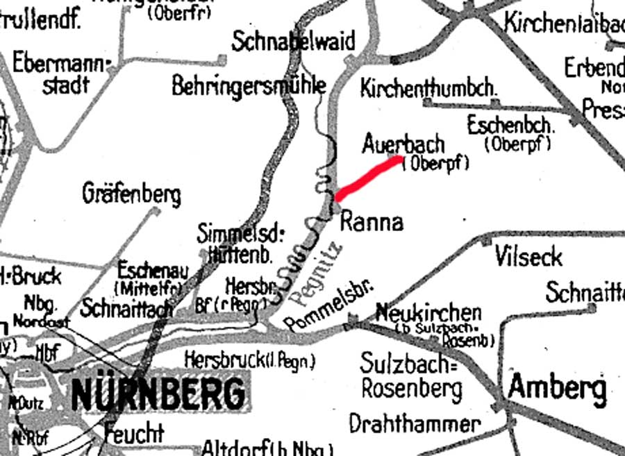 Stand der Kilometrierung: 1946 Ranna 0,0 - Auerbach (Oberpf) 8,13