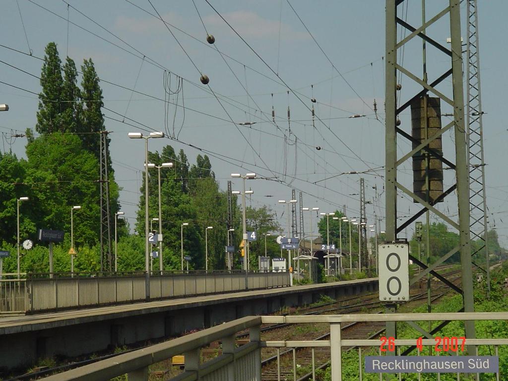 km 0,0 in Recklinghausen Süd km 0,0 gehört zu den Strecken Recklinghausen Süd 0,0 - Herne 3,80 und Recklinghausen Süd 0,0 - Recklinghausen Ost 5,30 Foto: Olaf Mensch, 26.04.2007