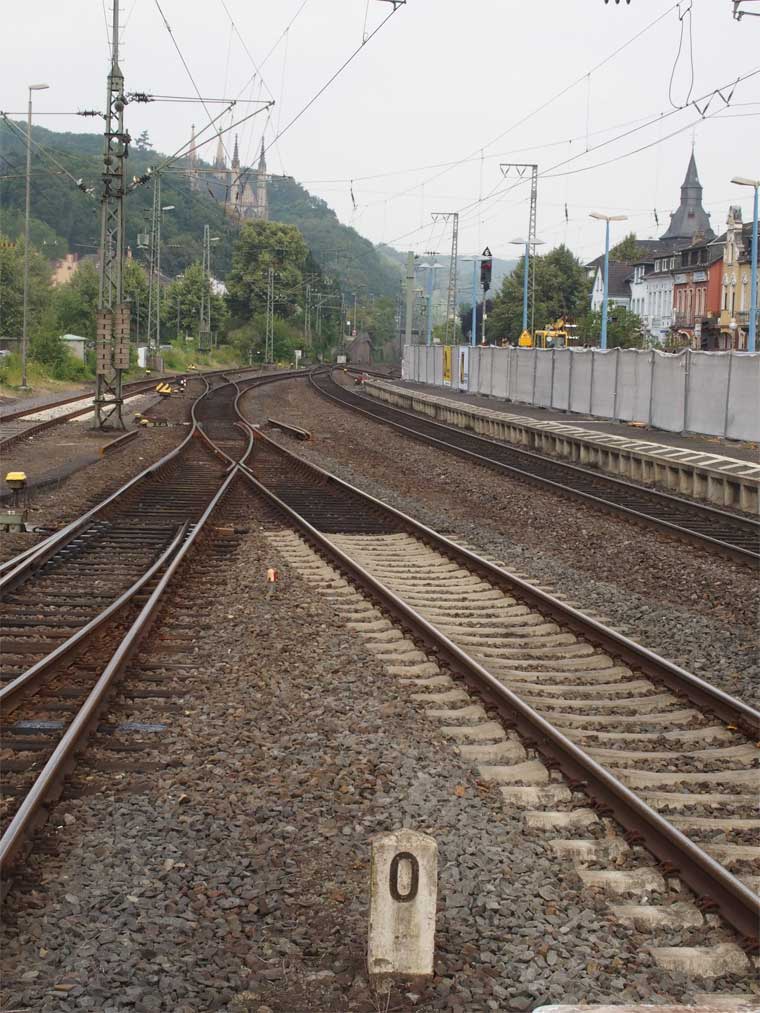 Remagen 0,0 km 52,72 der Strecke Köln Hbf -2,01 - Koblenz Hbf 91,20 - Bingerbrück 151,98 - Landesgrenze Preußen/Hessen (Mitte Nahebrücke) km 152,41 [= km 0,0 - Bingen (Rhein) 0,97 - Mainz Hbf 30,58]