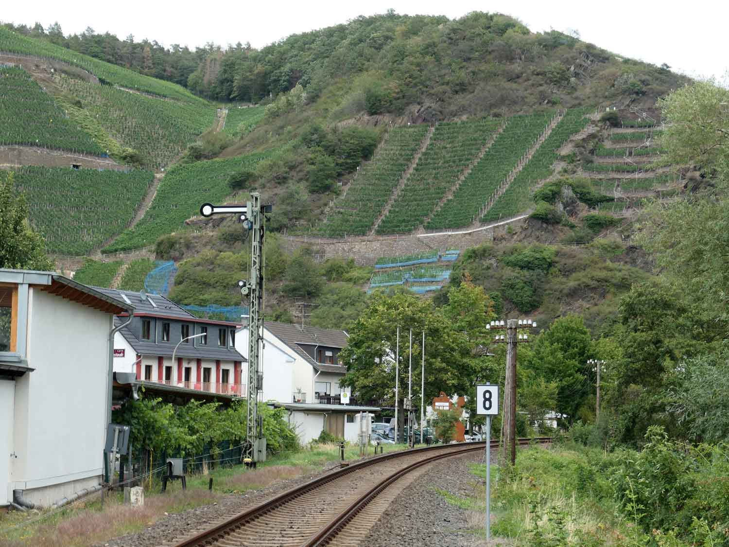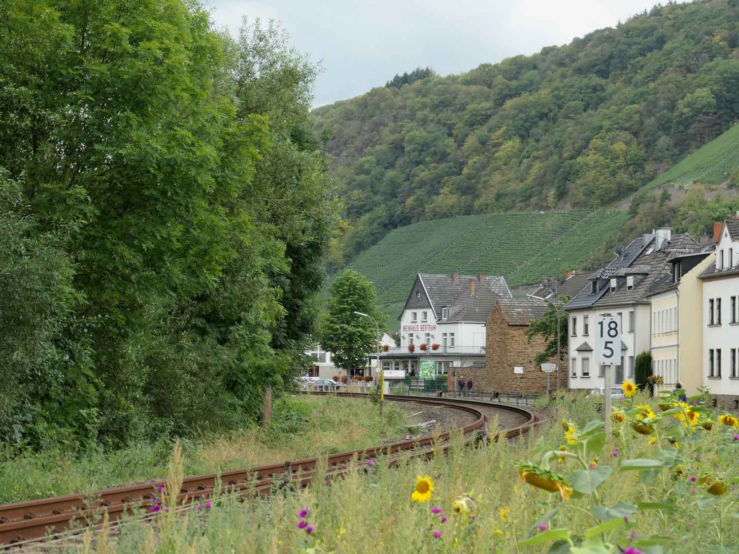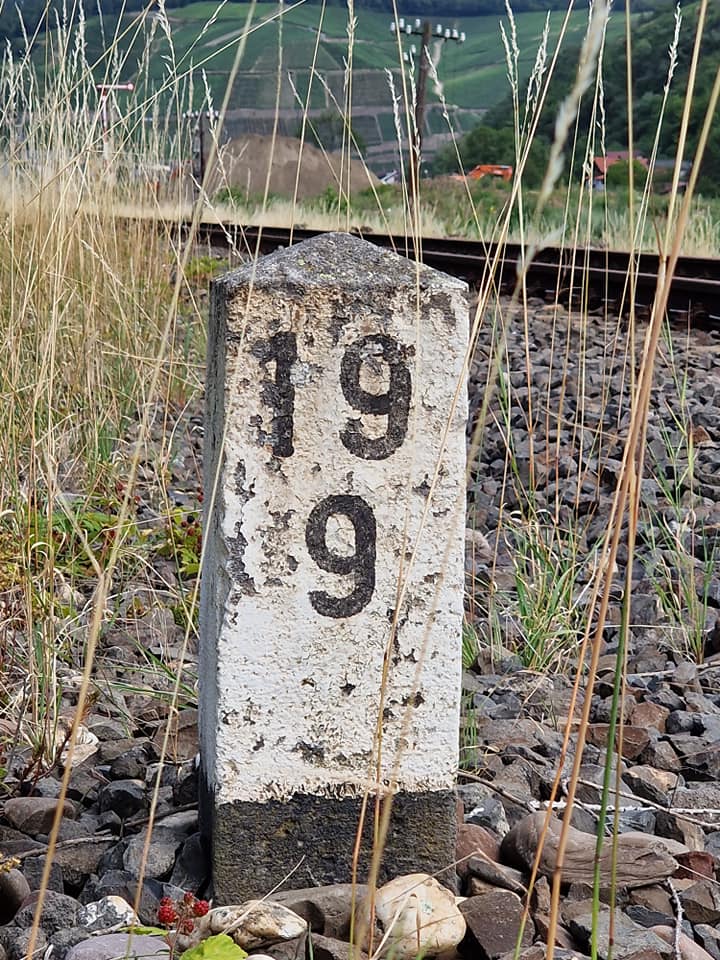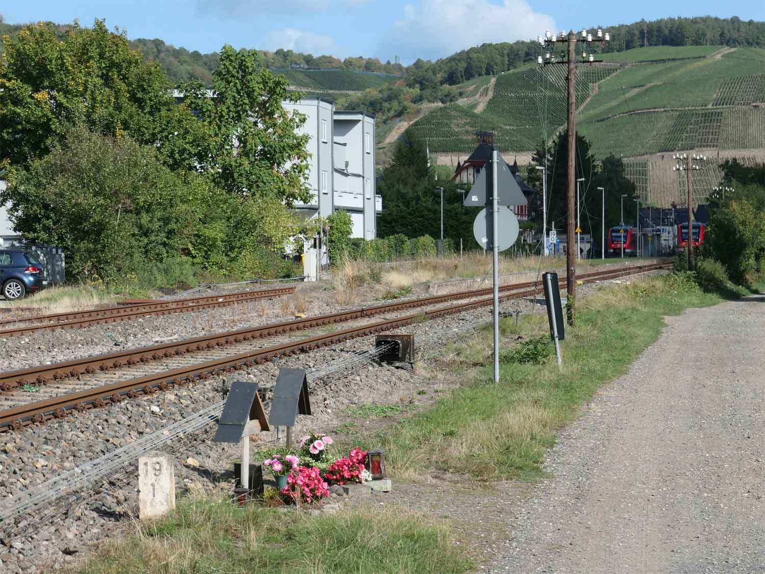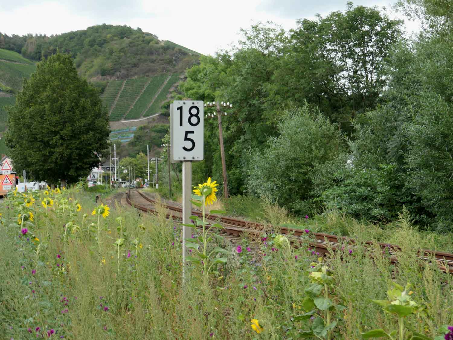 km 18,5 (Tafel und Stein) in Dernau - Blick Richtung Remagen
