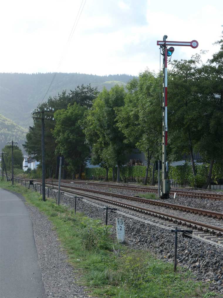 Mit Auflassung der Abzweigstellen Reisberg und Hellenbergwurde der Bogen von Remagen her etwas aufgeweitet. Dadurch entstand die Überlänge. | |