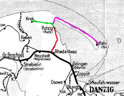 Putzig 0,0 - Schwarzau 4,9 - Krockow 22,2 (1942)