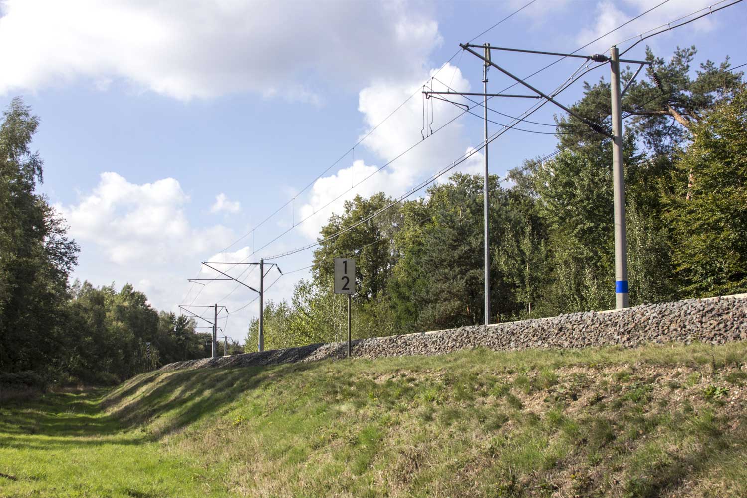 km 1,1; 1,0 usw. gehören zur mittlerweile abgeklemmten inneren Kurve mit Gegenbogen zur Prüfung von Neigetechnikfahrzeugen
