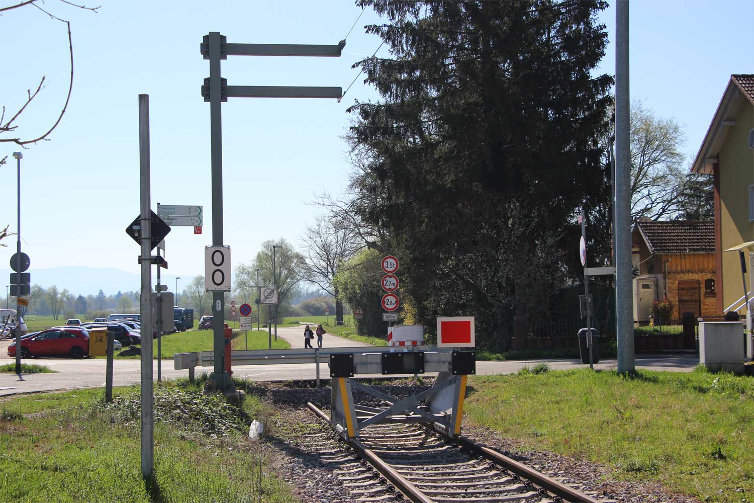 Gottenheim   km 11,72 der Strecke Freiburg (Breisgau) Hbf 0,015 - Breisach 22,50 - Staatsgrenze/Landesgrenze km 23,072 = km 21,55 - Kollmar (Els) Hbf 0,0