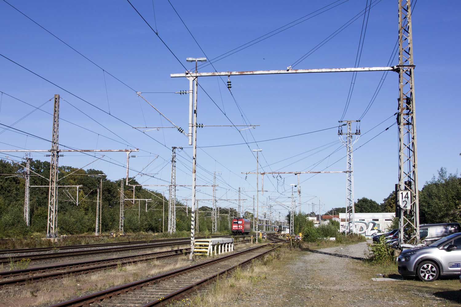 Man beachte auch den Bauartwechsel in der Oberleitungsanlage