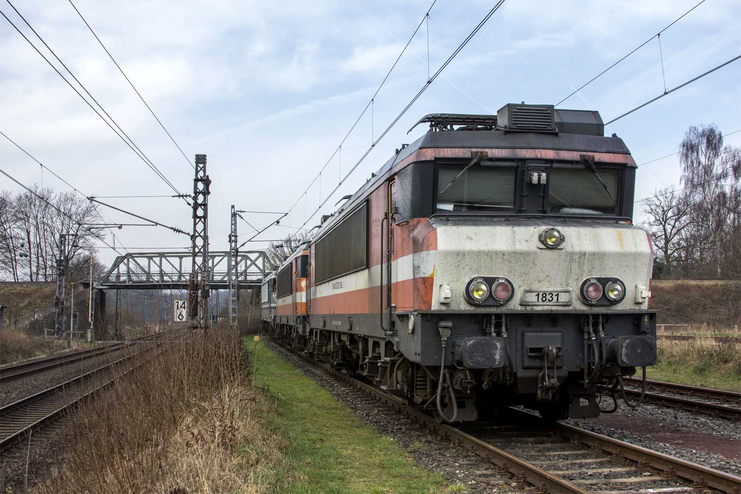 Rechts das Abstellgleis für niederländische Triebfahrzeuge (1829, 1837 und 1831)