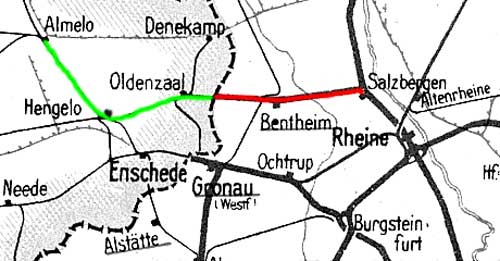 Salzbergen 0,0 - Bentheim 13,67 - Staatsgrenze Deutschland/Niederlande km 21,782 = (km 33,4 - Hengelo 15,4 - Almelo 0,0)