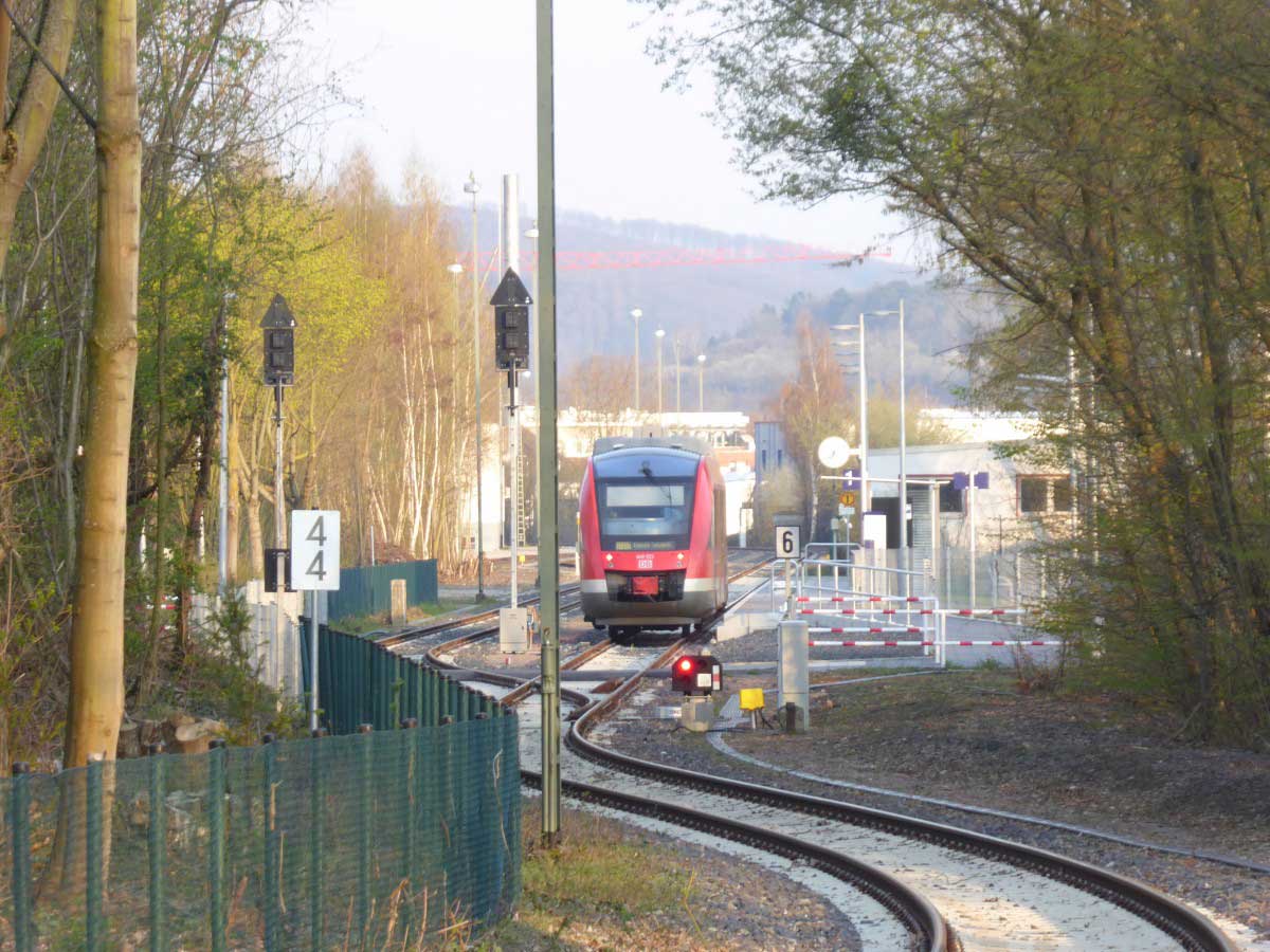 km 1,5 zwischen Einbeck-Salzderhelden (früher: Salzderhelden) und Einbeck Mitte (früher: Einbeck)