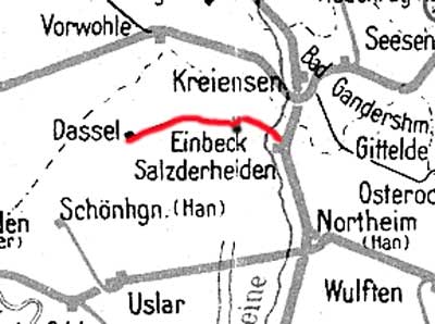 Salzderhelden 0,0 - Einbeck 4,23 = km 0,0 - Dassel 13,3 (Ilmebahn Einbeck-Dassel) (1945)