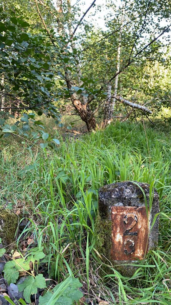 km 2,3 (Stein mit Metallplatte) zwischen Scharzfeld und Bad Lauterberg
