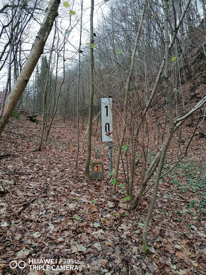 km 1,8 (Stein, Metallplatte fehlt schon und Tafel) zwischen Scharzfeld und Bad Lauterberg
