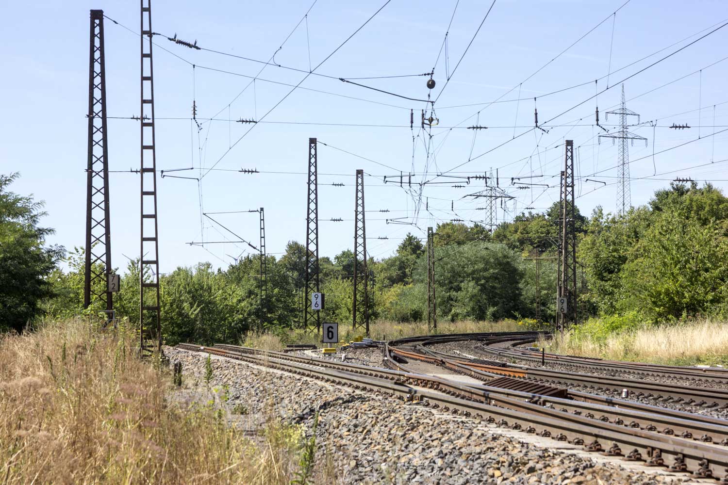 Schlüchtern 440 807 km 77,6 gehört zum Richtungsgleis der Strecke Frankfurt (Main) Hbf - Göttingen Mittig ein Anschlussgleis zum Südwestportal des Schlüchterner