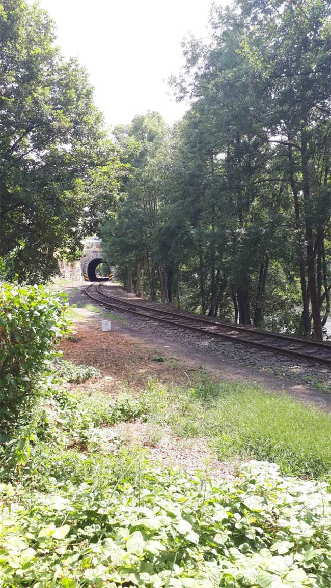 Blick vom Tunnelportal des Tunnel Loketský II in Loket (Elbogen) - Blick Richtung Krásný Jez (Schönwehr)