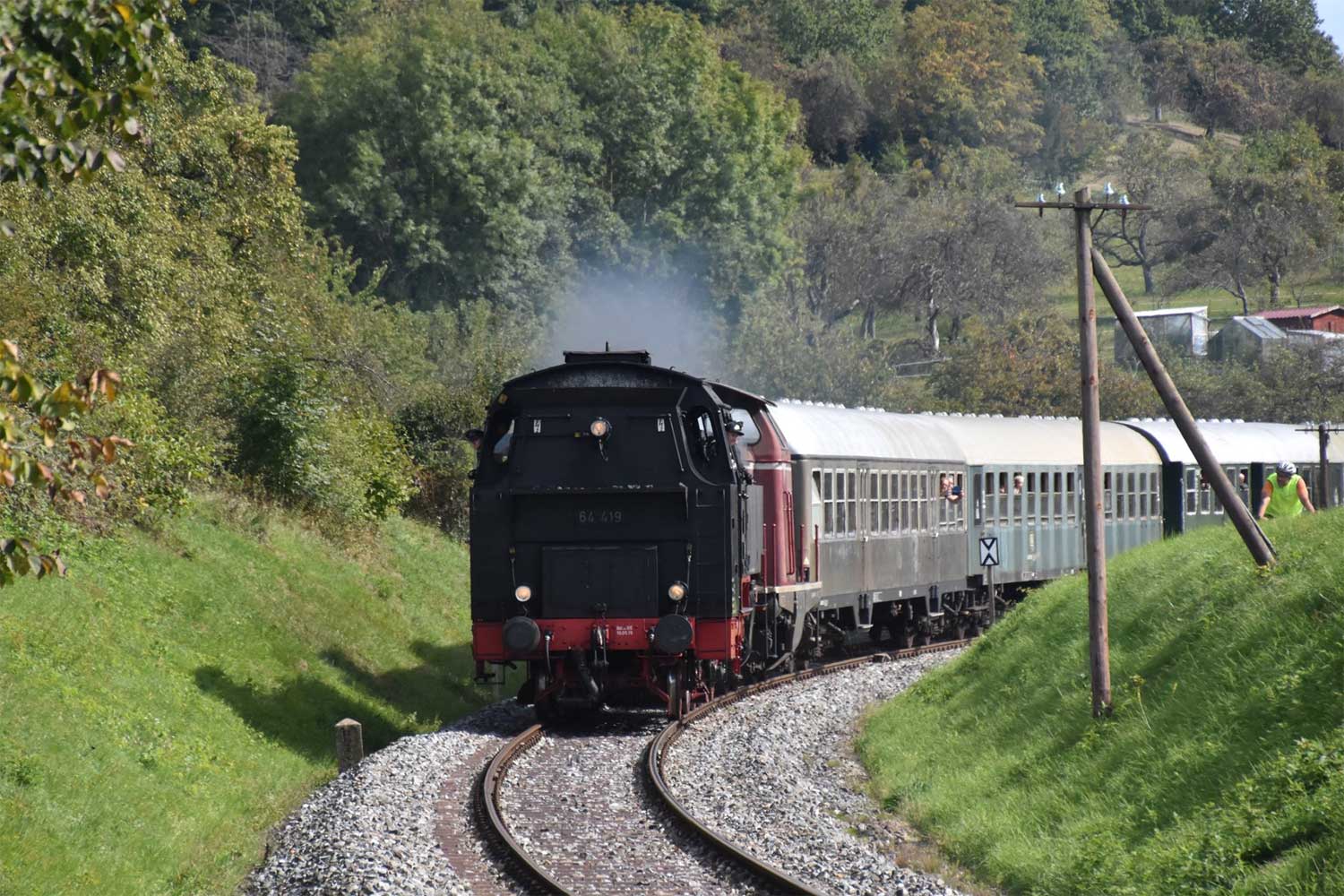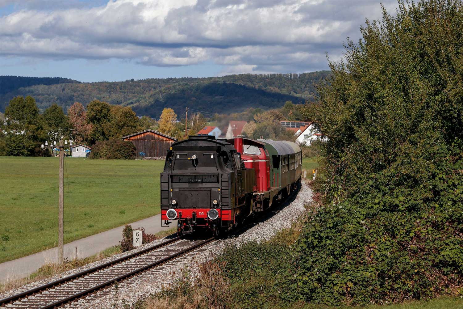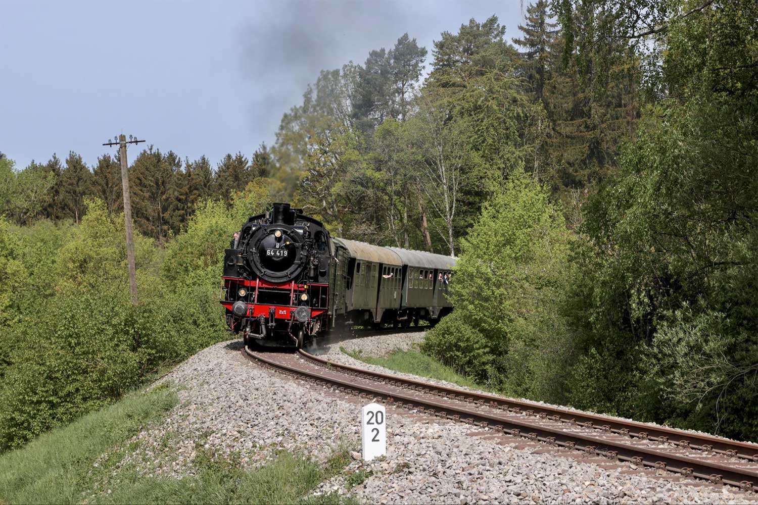 An der Spitze des Zuges 64 419 und V100 2084 als Schlusslok