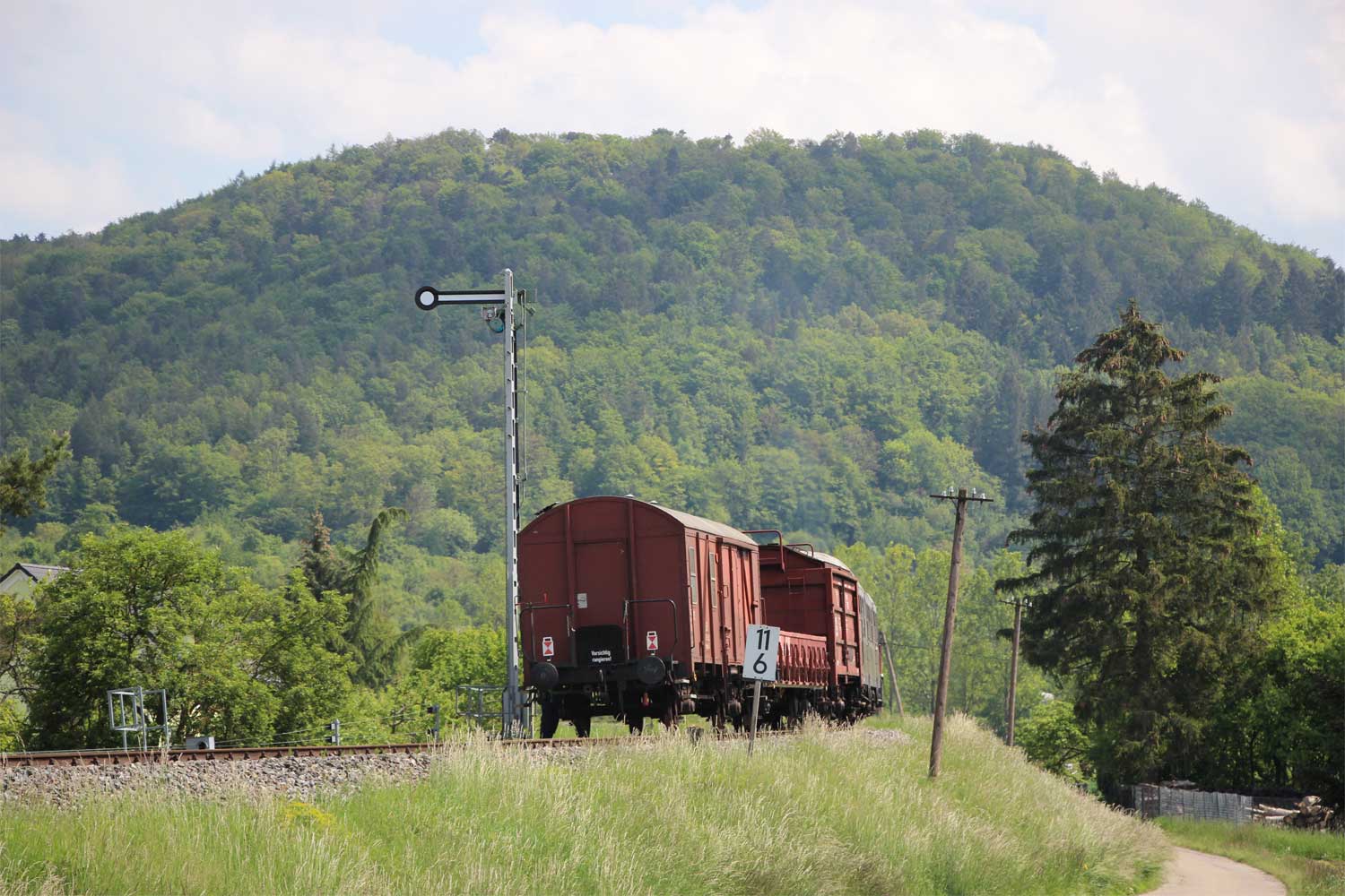 Das Einfahr-Signal aus der Gegenrichtung steht immer auf Fahrt, da nie mehr als 1 Zug auf der Strecke unterwegs ist.