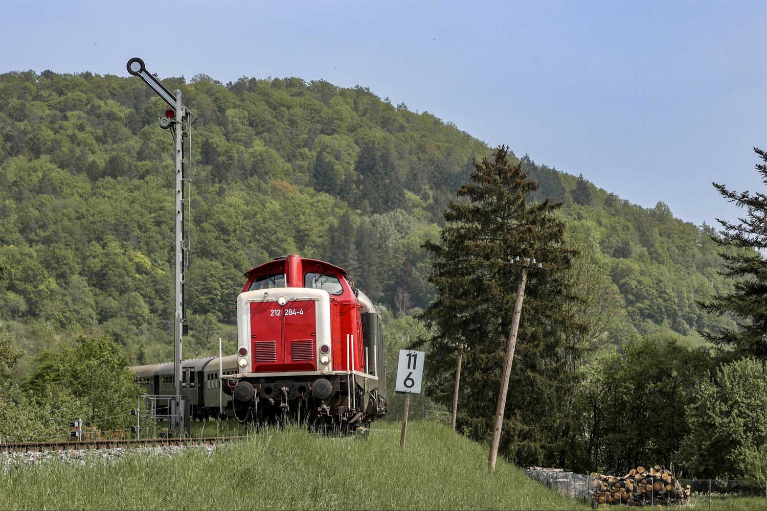 km 8,5 bei Schlechtbach - 212 084 als Schlusslok
