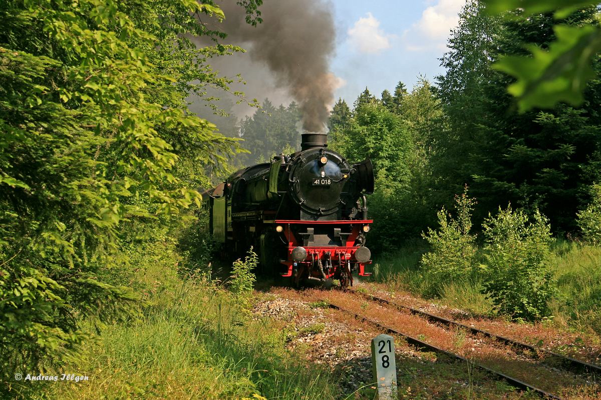 km 21,8 zwischen Breitenfürst und Welzheim - 41 018 und Schlusslok 212 084
