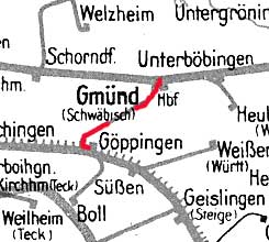 Schwäbisch Gmünd 0,11 km 47,49 der Strecke Stuttgart-Bad Cannstatt 0,0 - Aalen 72,16 - Nördlingen 111,53