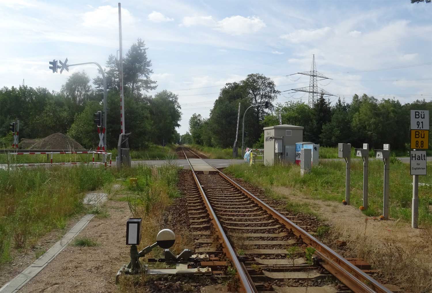 BÜ km 9,1 zwischen Wüstmark und Stern (Buchholz) - Blick Richtung Schwerin