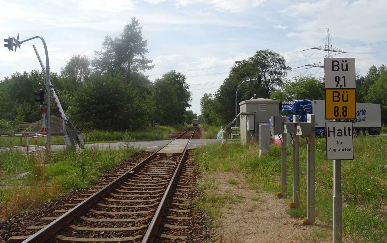 BÜ km 8,8 zwischen Wüstmark und Stern (Buchholz) - Blick Richtung Schwerin