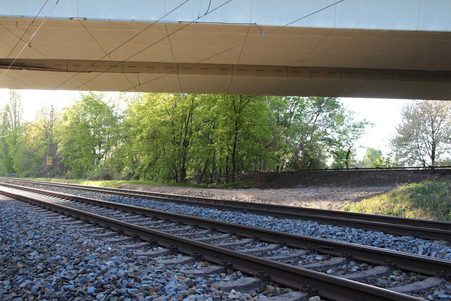 Im Vordergrund die Lehrter Bahn mit km 6,8