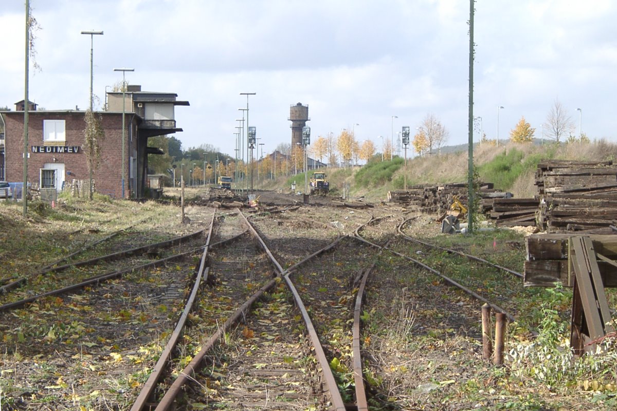 Die Brücke hinter dem ETA führte über die Strecke Aachen Nord -0,02 - Würselen 5,84 - Mariagrube 11,93 - Jülich 27,62