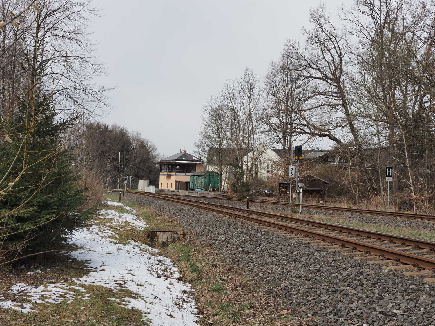 Rechts die Strecke Zwönitz 0,02 - Stollberg (Sachs) 16,59 - Chemnitz Süd 37,96 (ZC) bei km 17,3