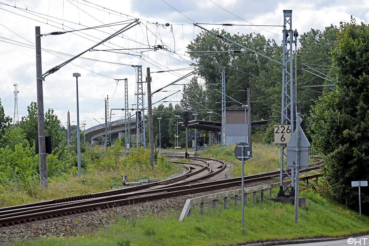 Nach rechts verläuft die Strecke Richtung Stralsund Rügendamm