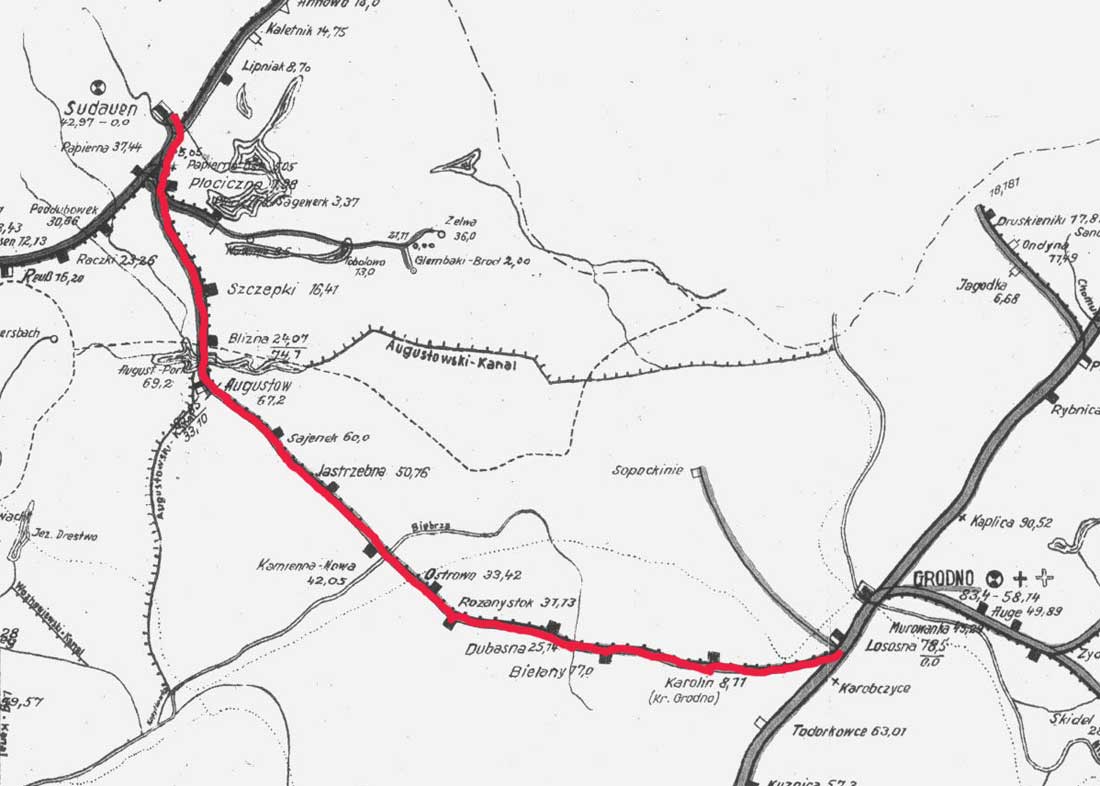Sudauen 0,0 - Blizna 24,07 = km 74,7 - Lososna 0,0