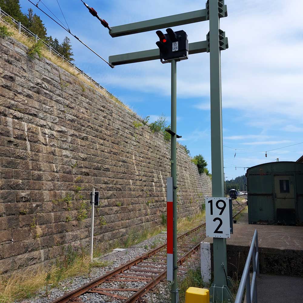 km 29,7 (Stein, rechts im Bild) gehört zur Strecke Freiburg (Breisgau) Hbf -1,52 - Titisee 29,29 - Donaueschingen 74,72