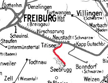 Titisee 0,00 km 29,29 der Strecke Freiburg Hbf 0,0 (neu -1,52) - Donaueschingen 74,72