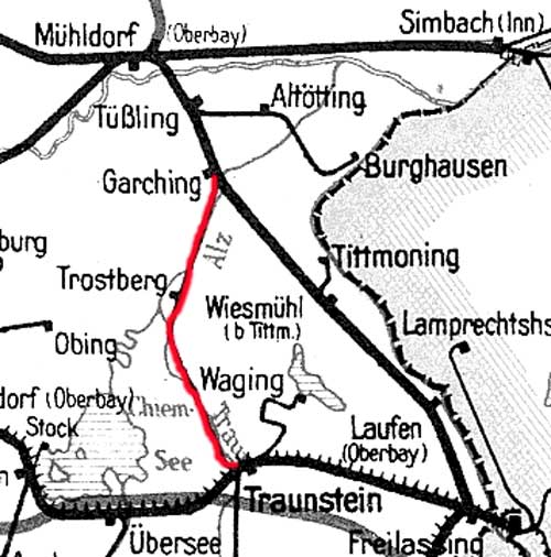Garching (Alz) 33,88 km 16,41 der Strecke Mühldorf (Oberbay) 0,0 - Tüßling 7,02 - Garching (Alz) 16,41 - Freilassing 65,58 (5723)