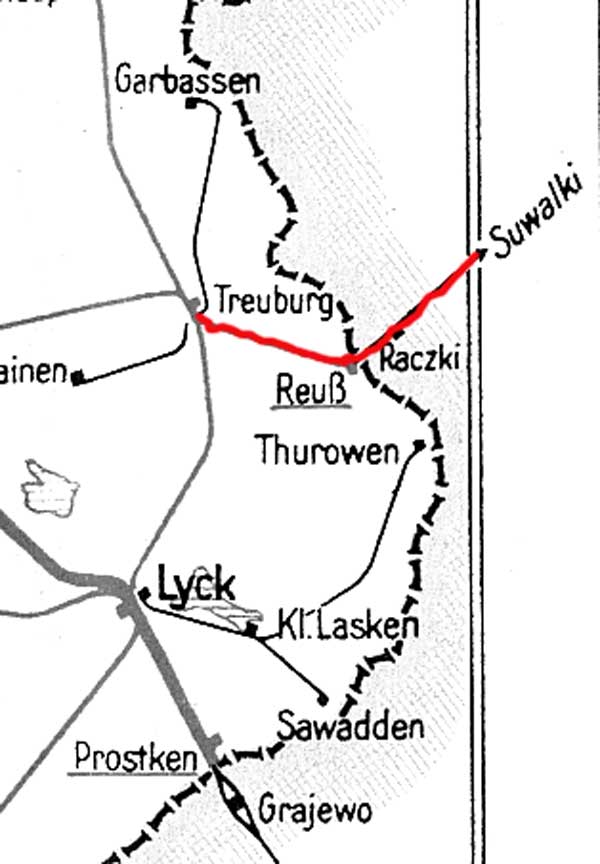 Treuburg 0,0 - Reuß 16,20 - Grenze 17,11 - Suwalki