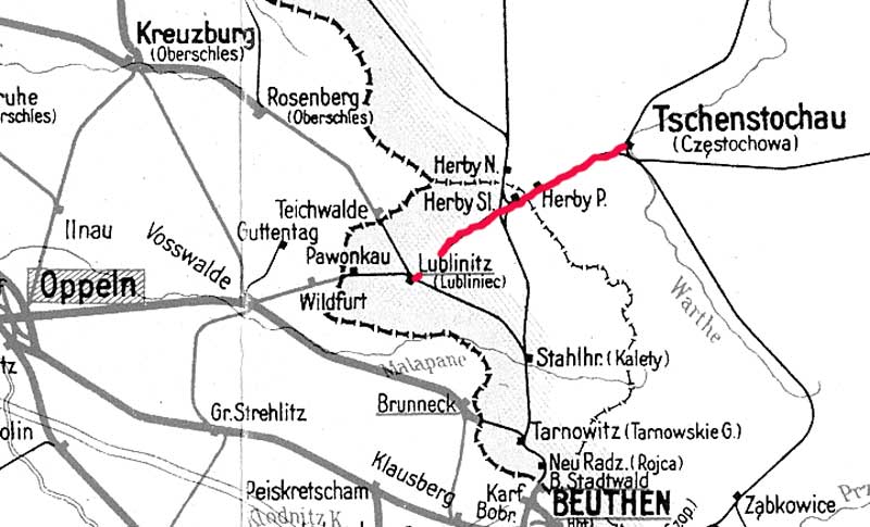 Tschenstochau 0,0 - Alt Herby 23,05 - Loben (Lublinitz) 39,76