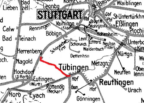 Tübingen Hbf 0,0 - Gültstein 17,24 - Streckenunterbrechung - (Herrenberg 21,33) (1981)