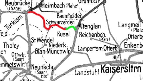 Türkismühle 0,0 - Schwarzerden 22,29 - Kusel 32,62 = km 4,64 - Altenglan 0,0