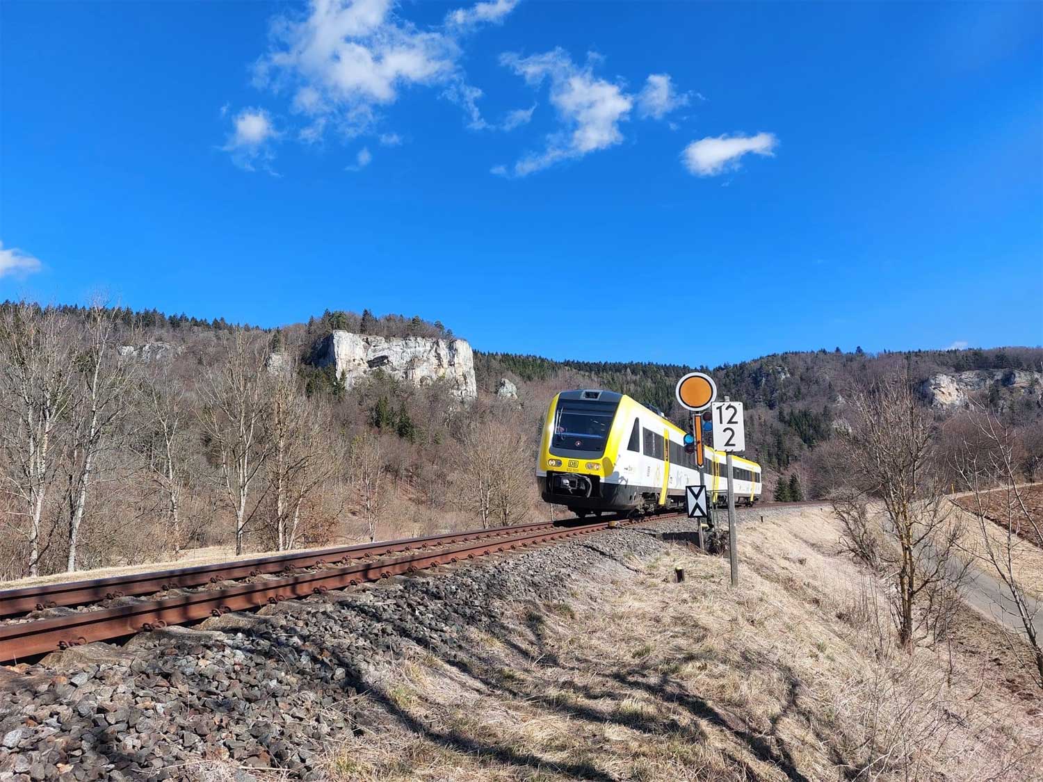 km 19,0 zwischen Beuron und Hausen im Tal - 611 533 als IRE 3213 (Ulm - Donaueschingen)