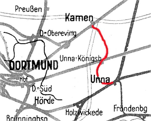 Kamen - von rechts mündete die Strecke aus Unna ein