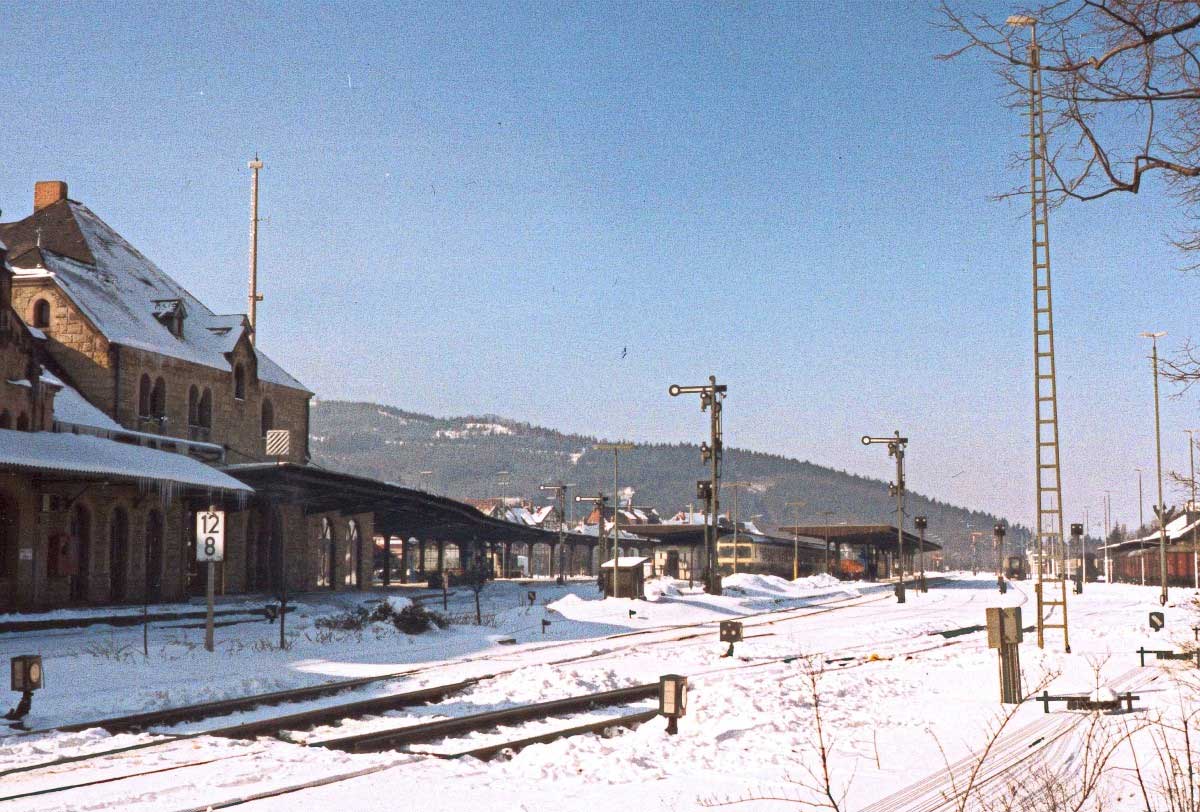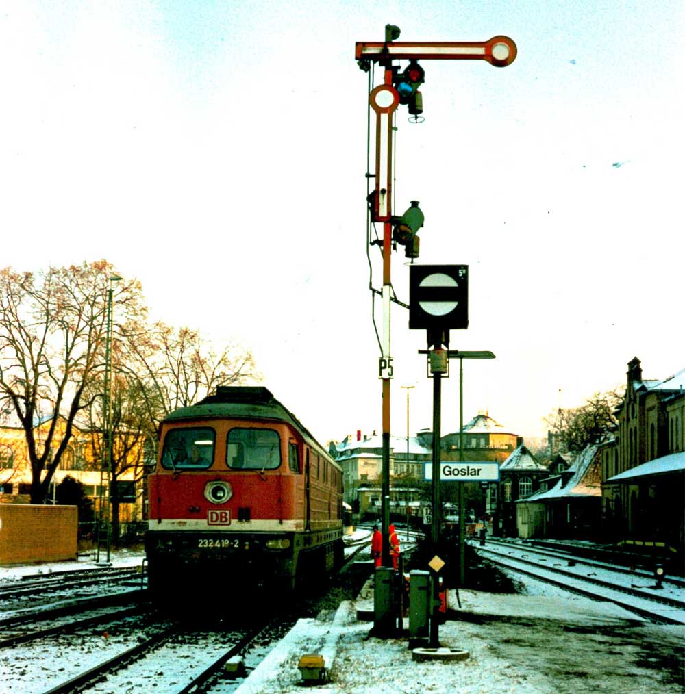 Goslar | 12,81 | km 95,39 der Strecke (Helmstedt 0,0) - Neuekrug-Hahausen 79,24 (kommend)/79,19 (gehend) - Langelsheim 89,07 - Goslar 95,39 (1930) |