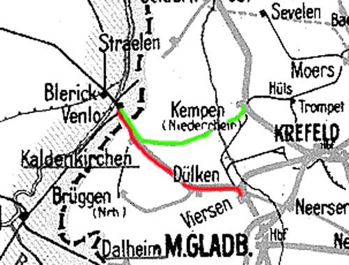 Kempen (Niederrh) 0,0 - Kaldenkirchen 18,11 - Grenze Deutschland/Niederlande 19,384 = km 0,0 - Venlo 2,9 (1944)