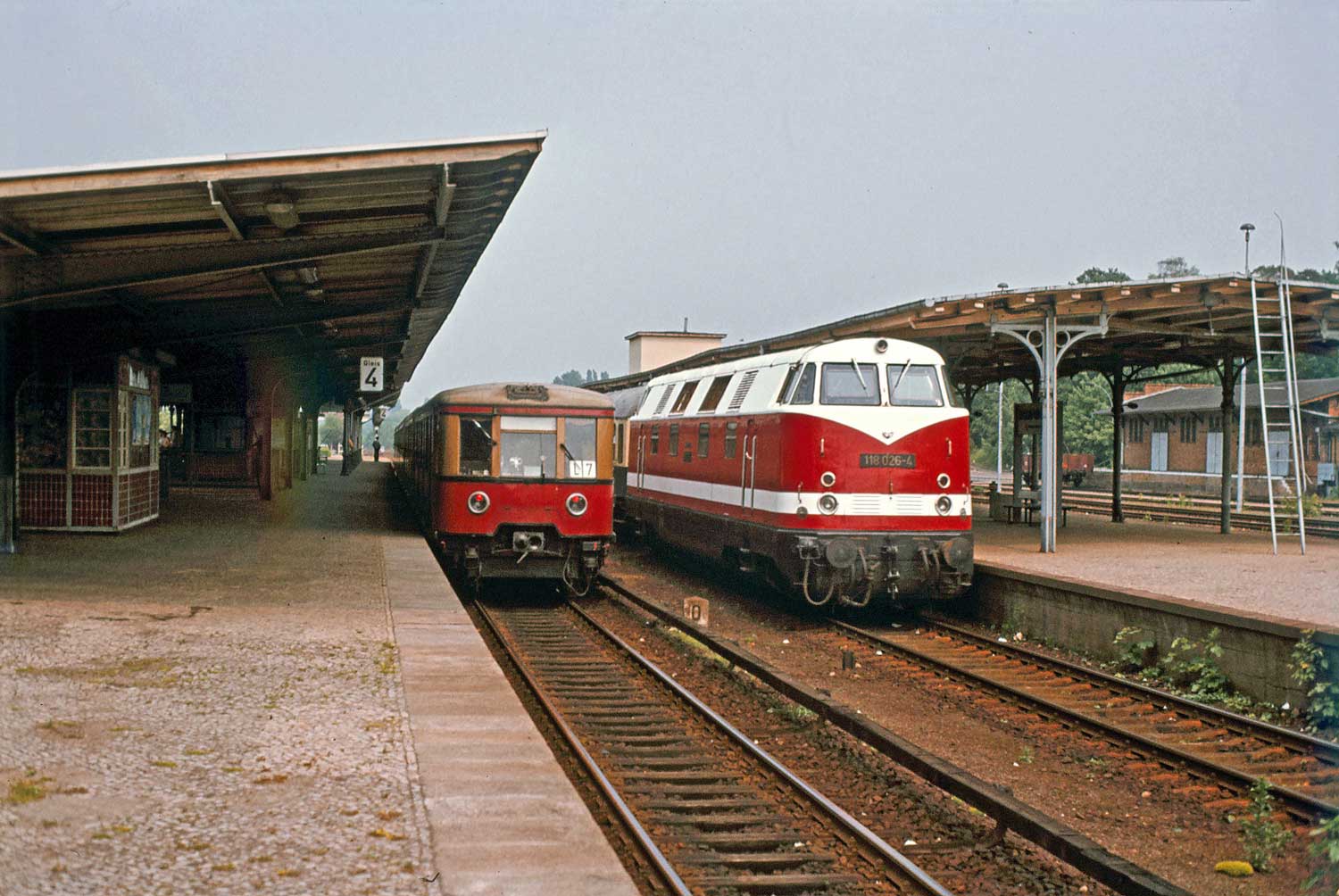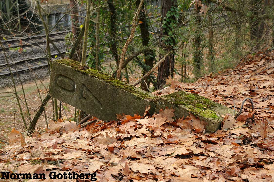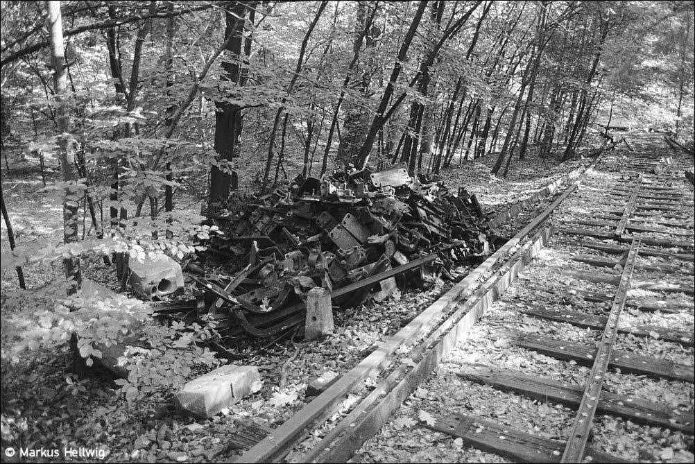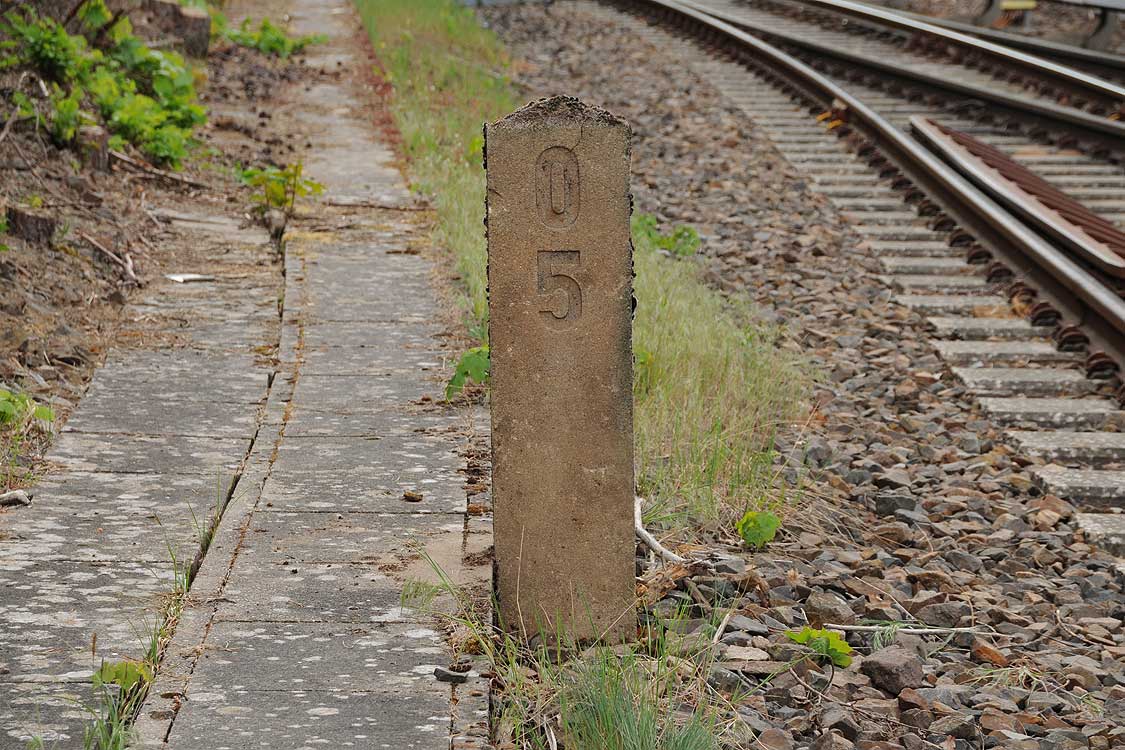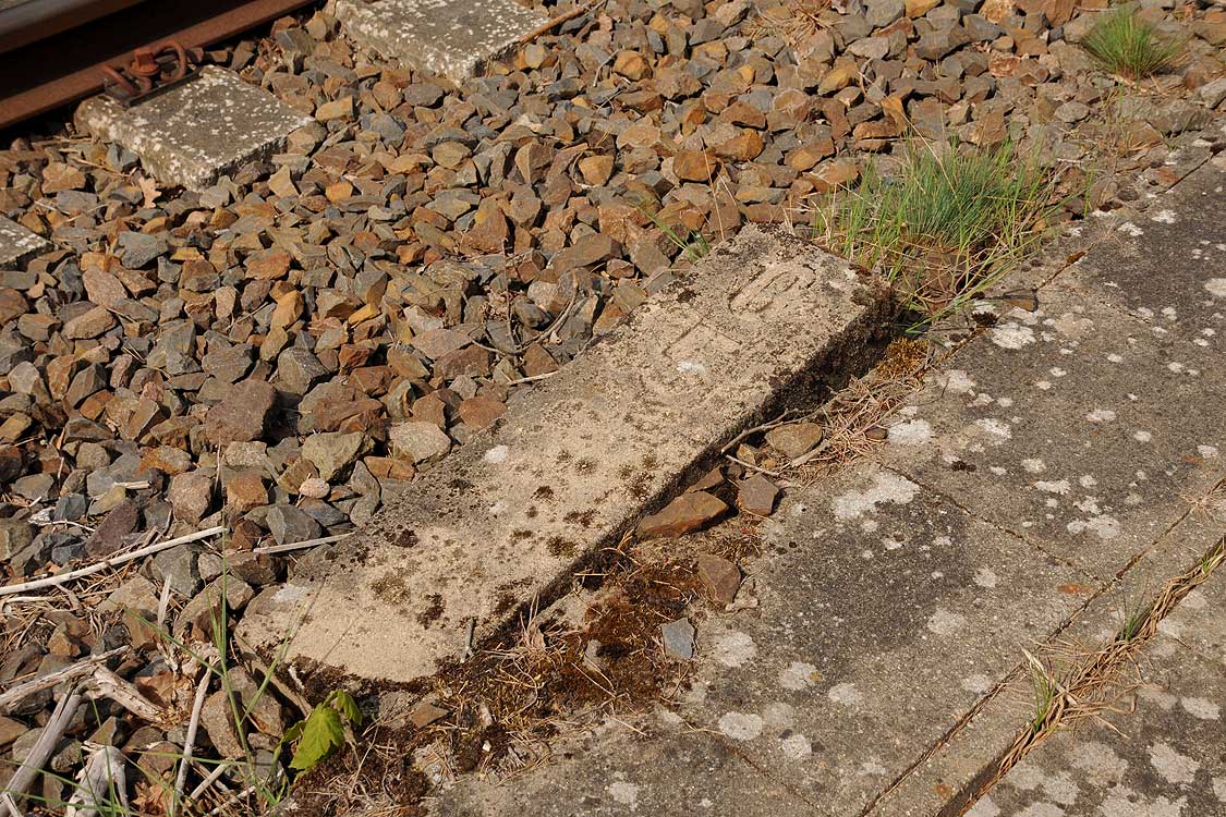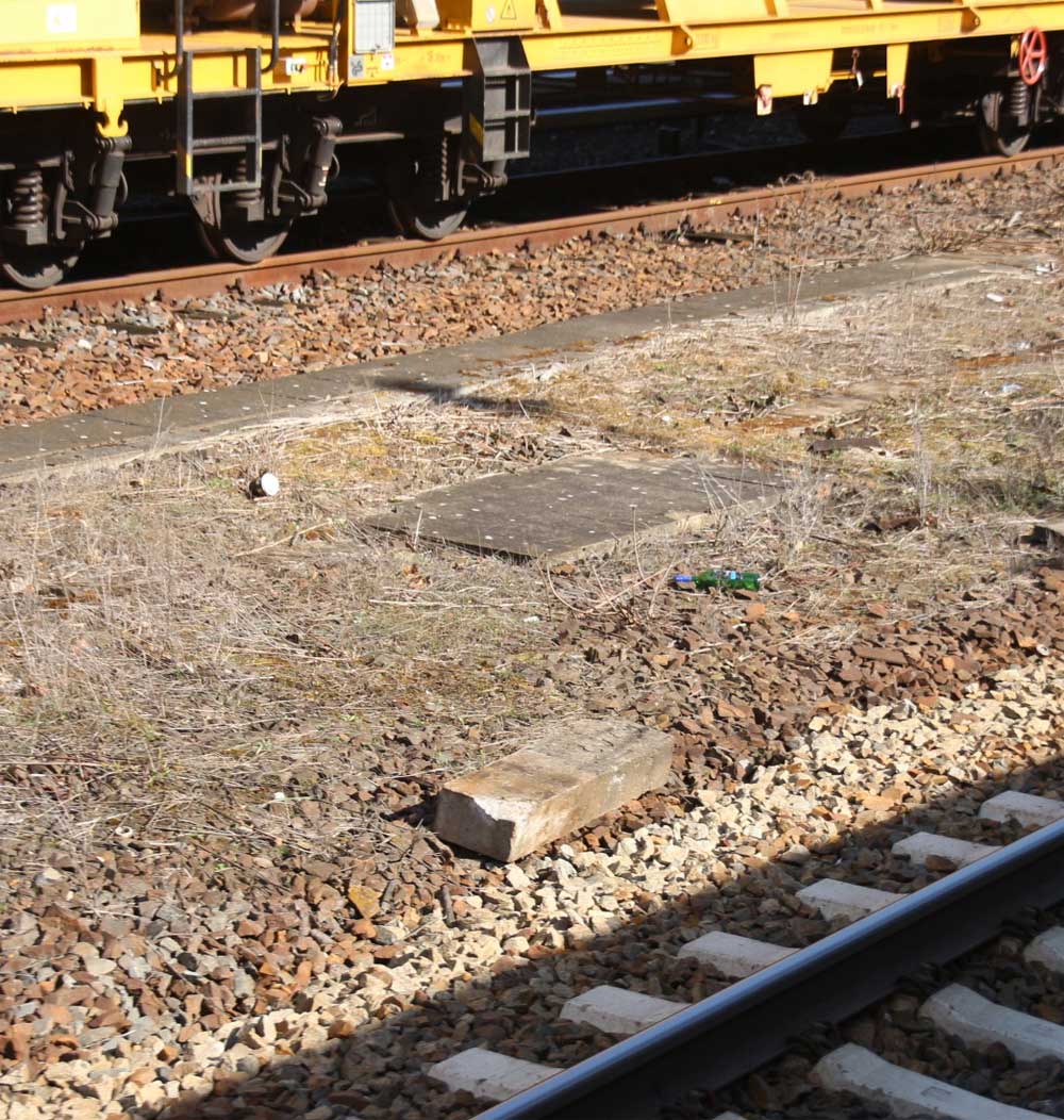 Im Hintergrund sieht man die Reste des Bahnsteiges.