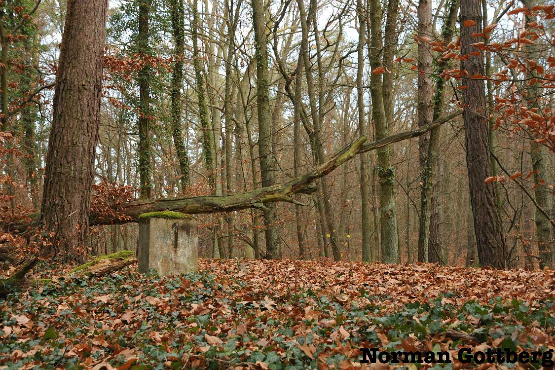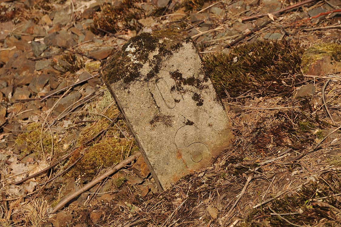 Die wundersame Auferstehung des Kilometersteines, jetzt liegt er wieder.