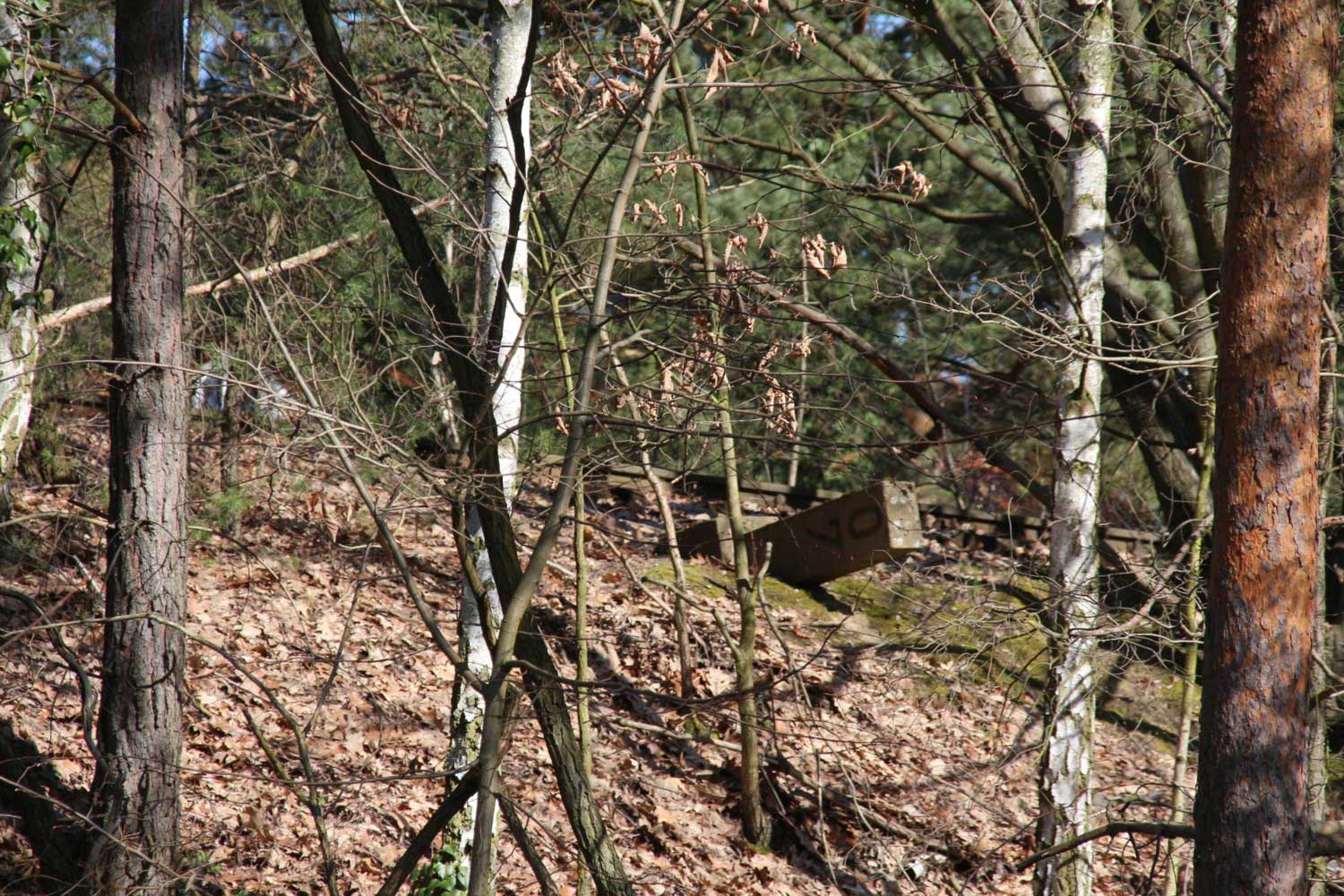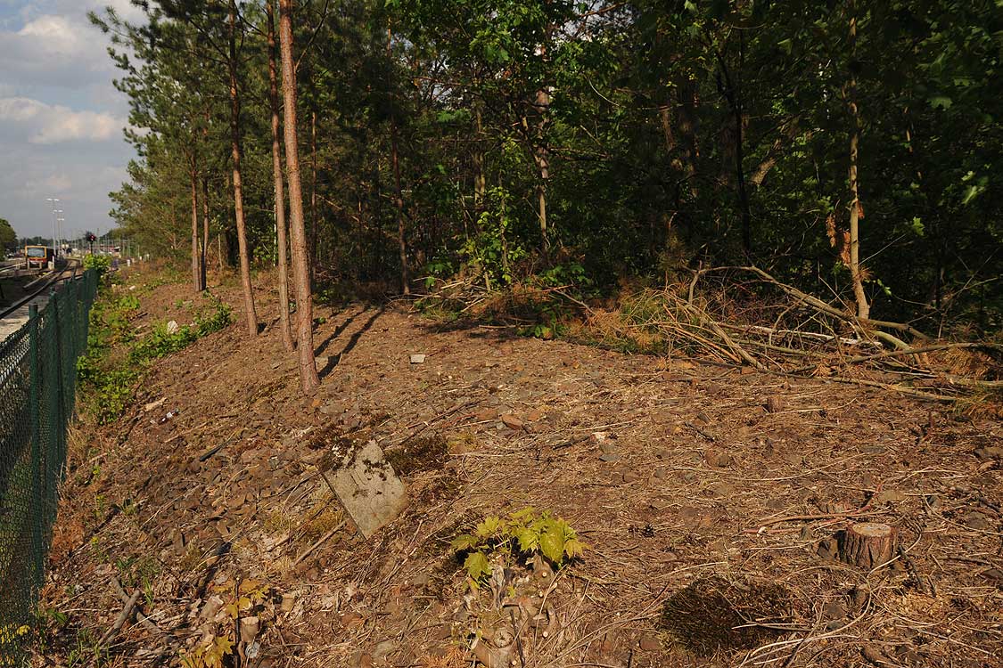 Unmittelbar vor dem Schrotthaufen ein Messpunkt.