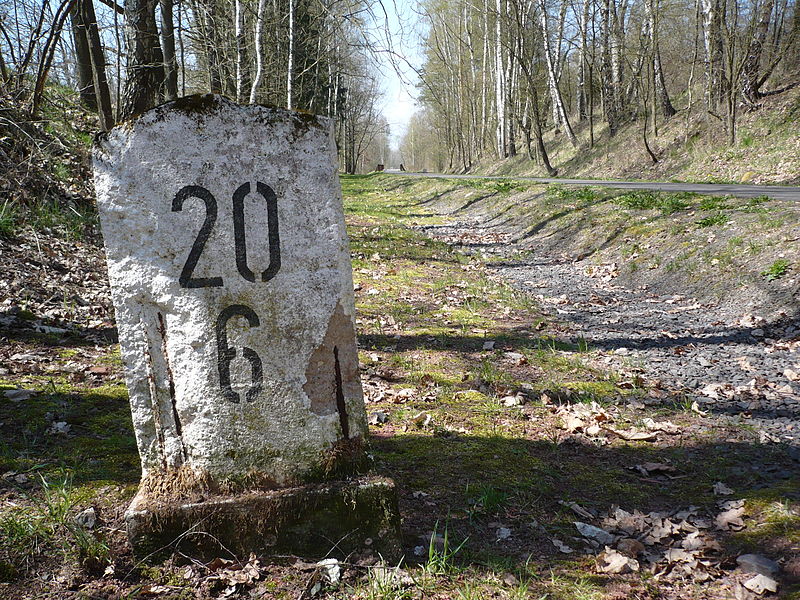 English: Kilometre stone 20.6 km on abolished railway line Wiesau - Cheb