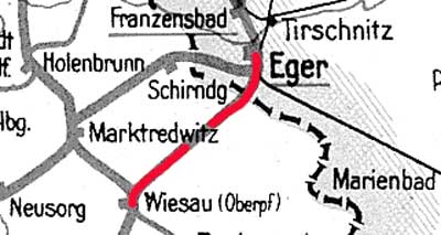 Wiesau (Oberpf) 0,0 - Waldsassen 14,3 - Staatsgrenze Deutschland/Tschechien 19,663 - Cheb (dt.: Eger) 26,5 (1945)