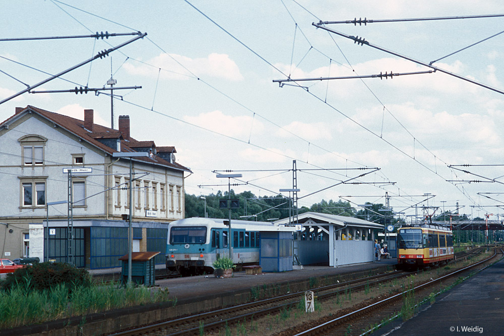 Wörth (Rhein) 13,78 km 49,87 der Strecke Schifferstadt 0,015 - Wörth (Pf) 49,87 - Berg (Pf) 59,48 - Staatsgrenze km 60,959 [= km 56,837 - Lauterbourg (Els) 55,493 - Röschwoog 36,496 - Strasbourg Ville 0,0]
