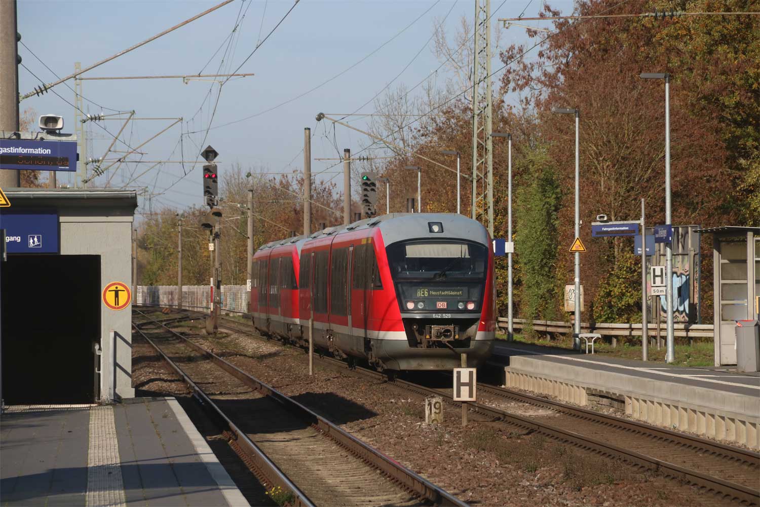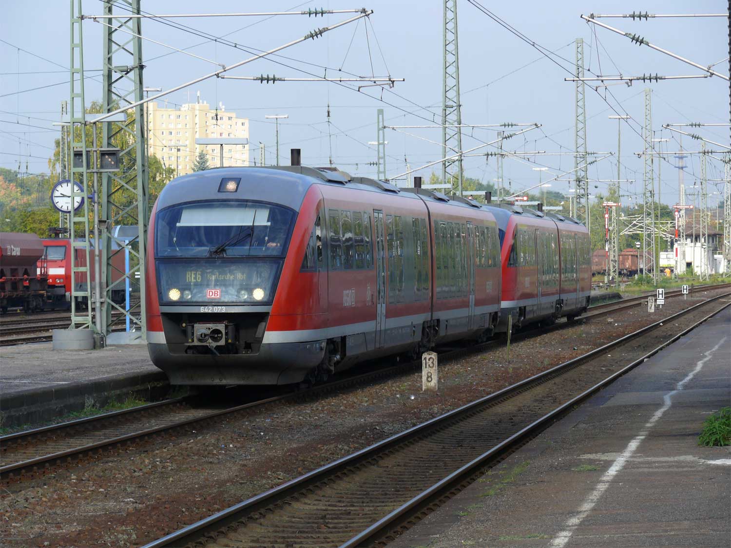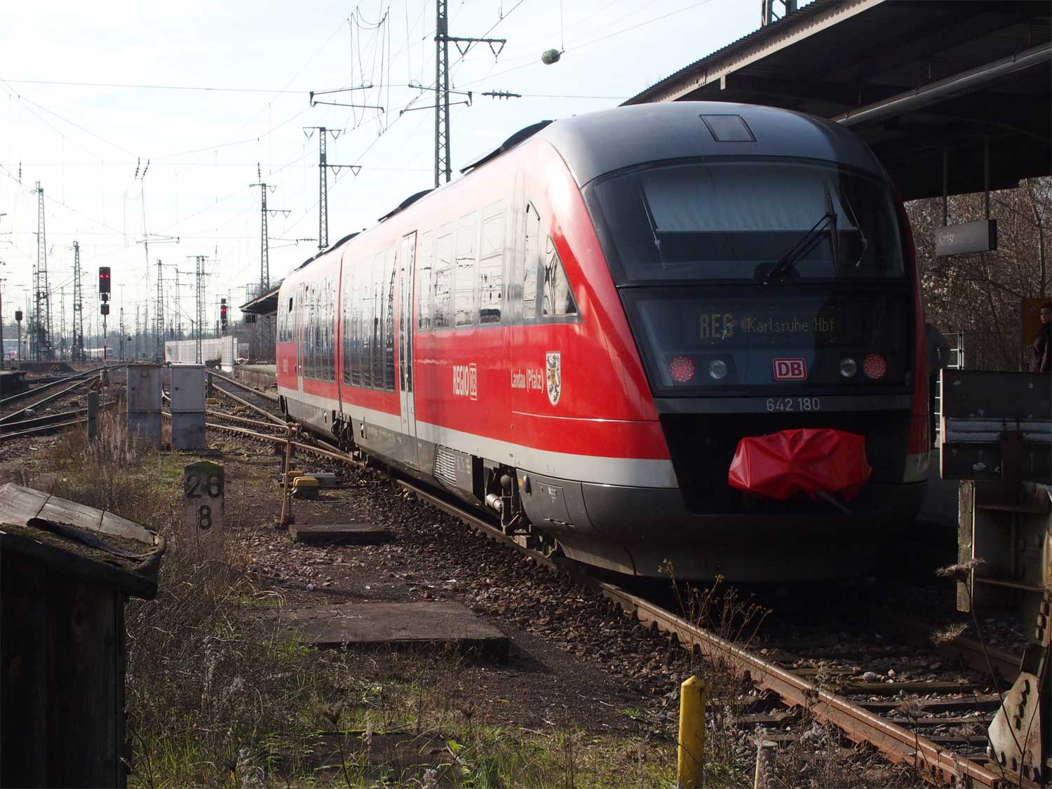 km 26,8 in Karlsruhe Hbf - 642 180, 642 680 bei der Ankunft als RE 12027