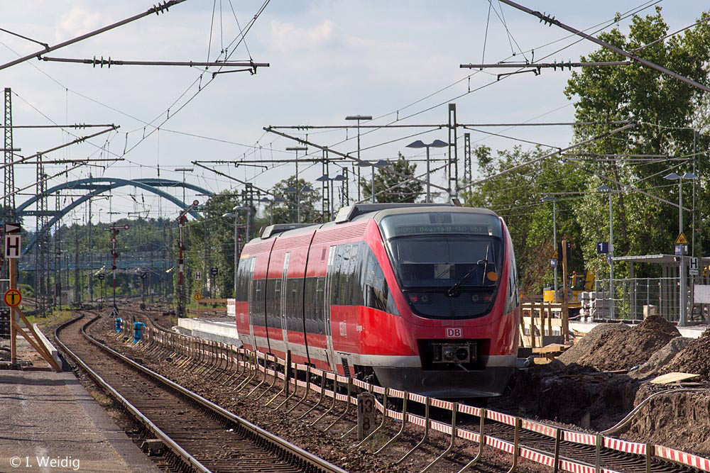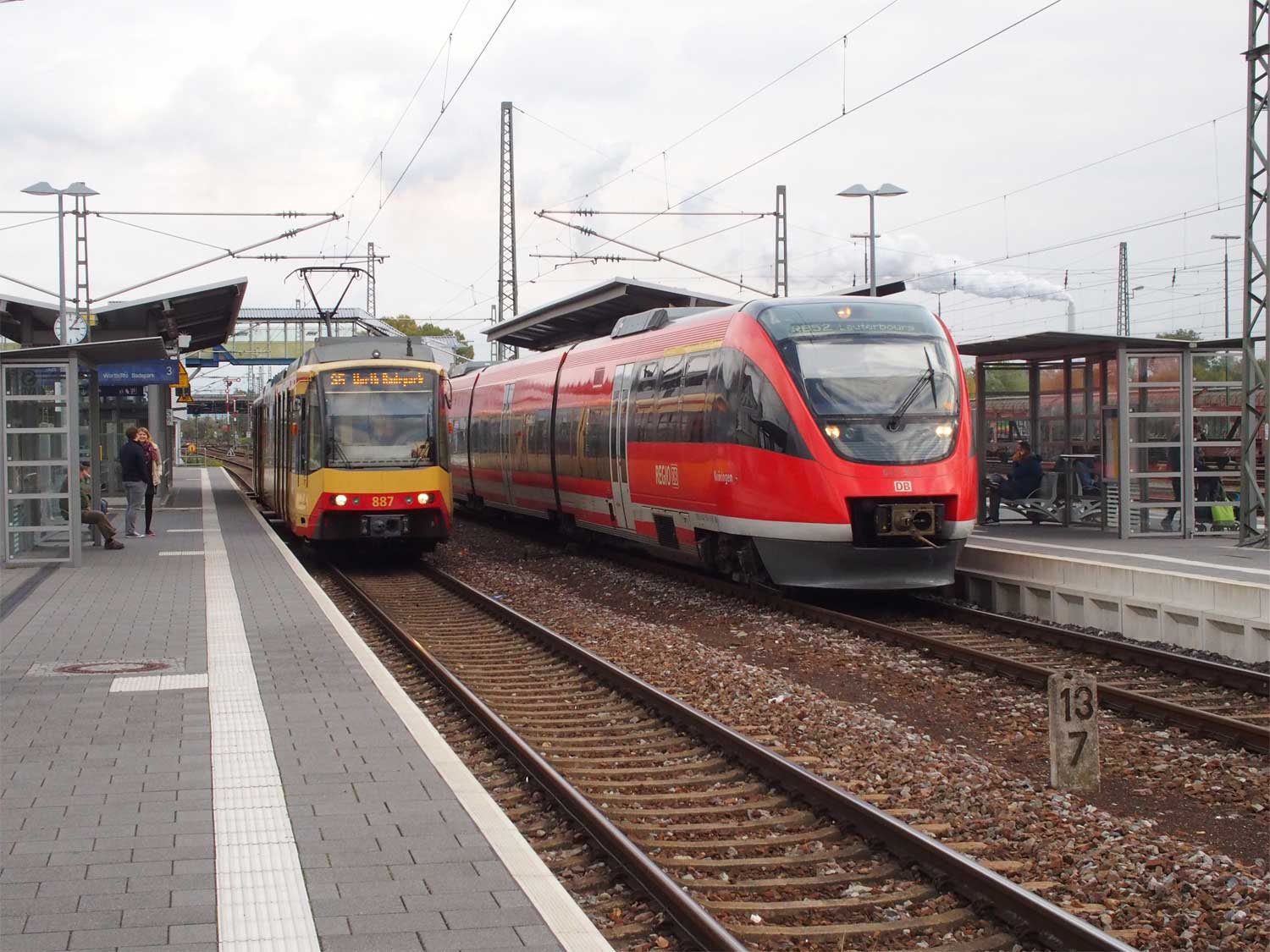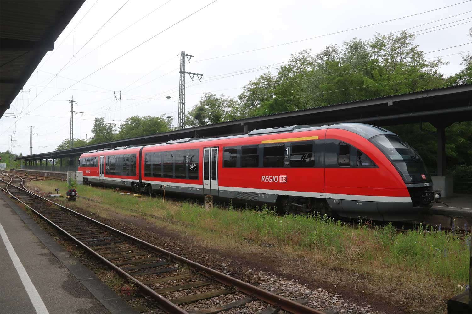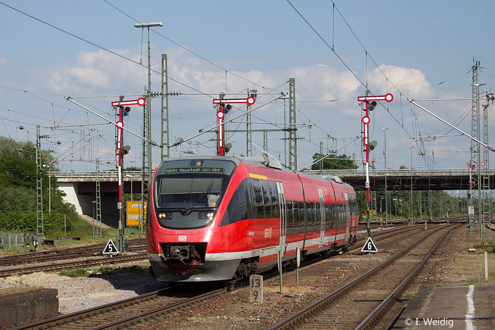km 26,8 in Karlsruhe Hbf - 642 180, 642 680 bei der Ankunft als RE 12027