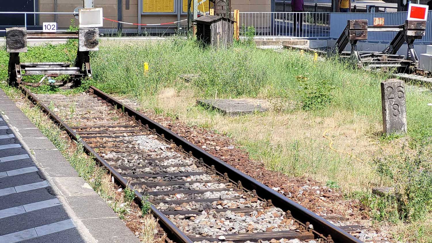 km 0,0 der Strecke Karlsruhe West 0,0 - Karlsruhe Hafen 2,32