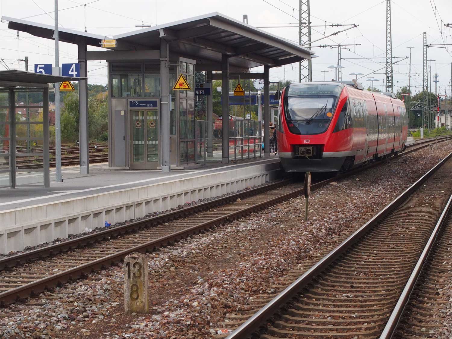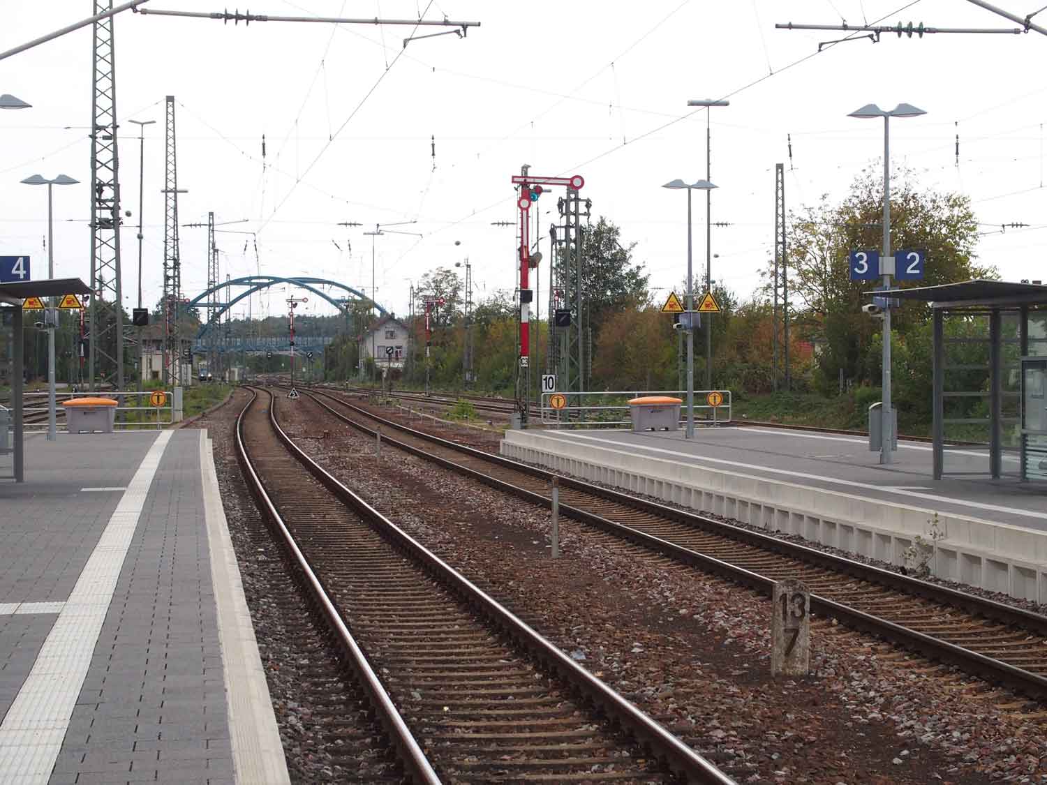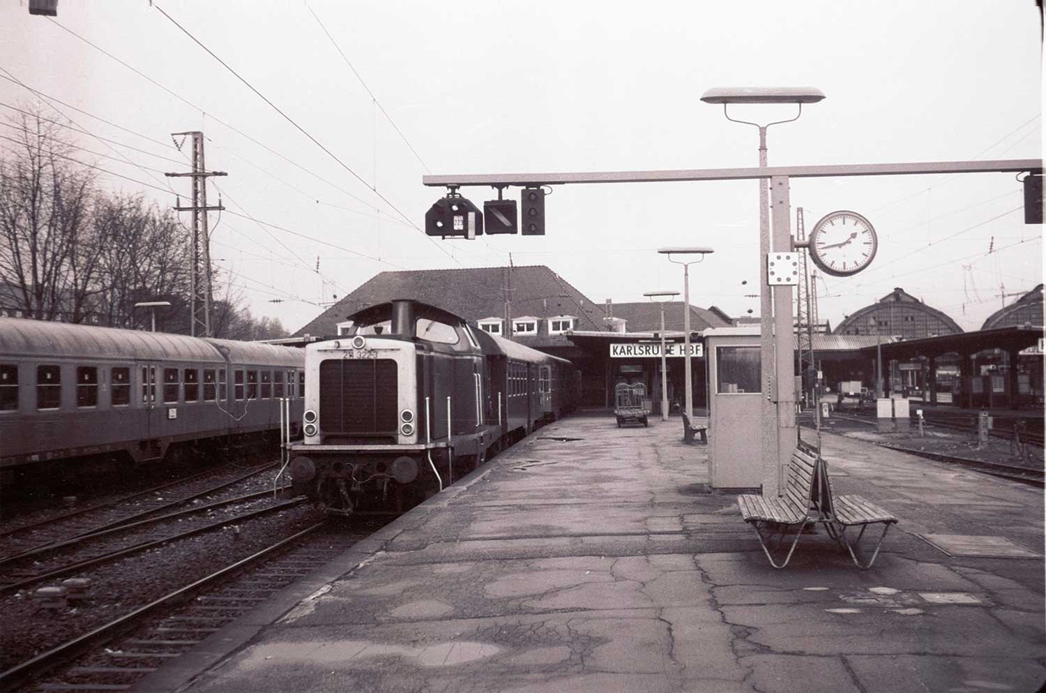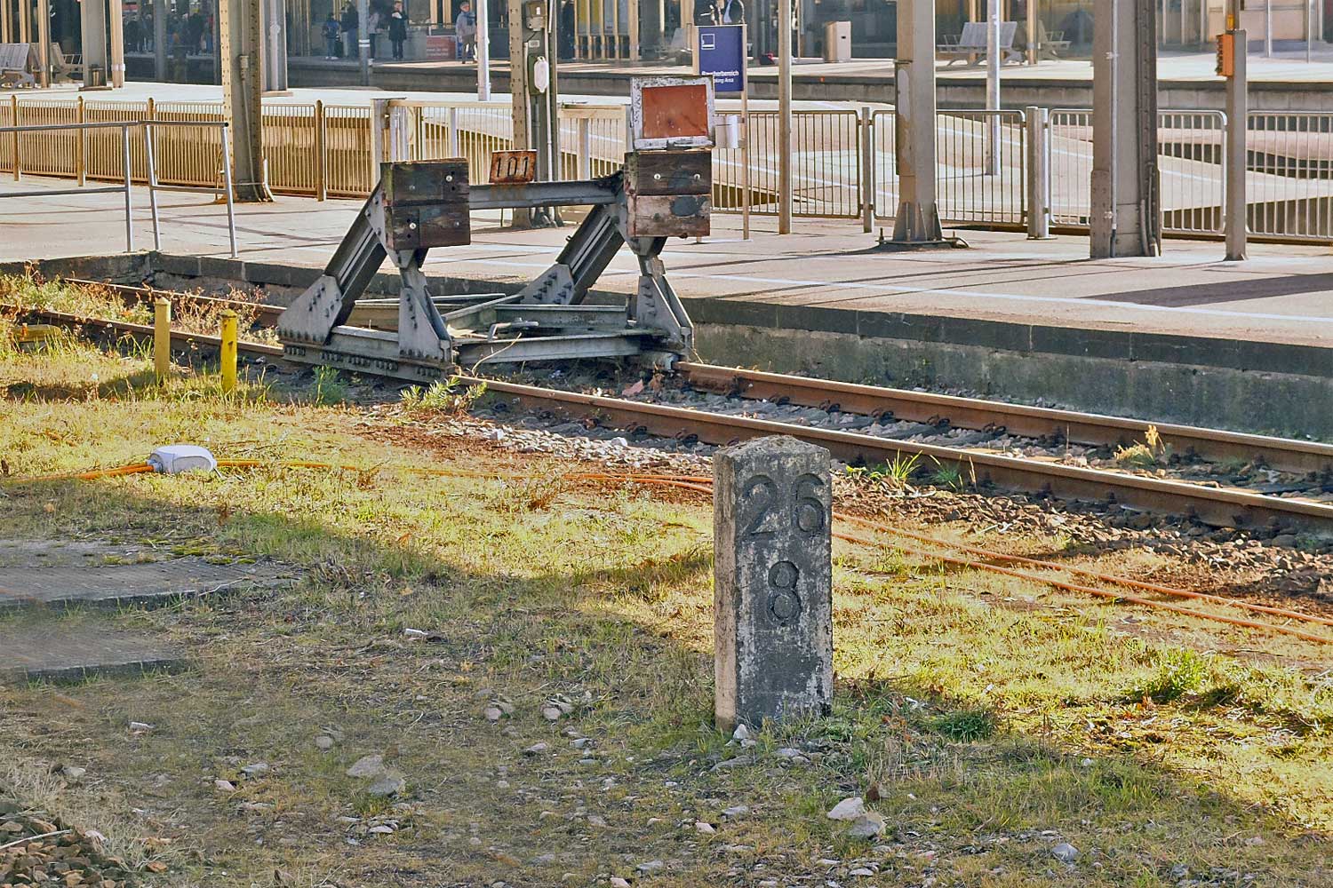 Karlsruhe Hbf 27,013 km 72,90 der Strecke Mannheim Hbf 0,0 - Heidelberg Hbf (alt) 18,71 (neu) 17,490 = 19,100 - Karlsruhe Hbf 72,90 - Basel Bad. Bf 270,69 - Singen (Hoh) 384,08 - Konstanz 414,34 - Staatsgrenze 414,83